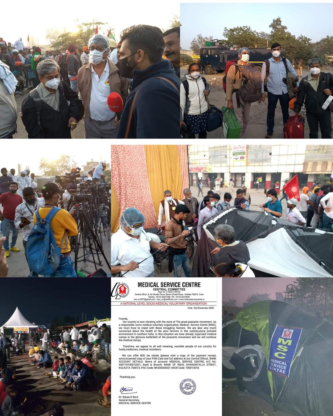 Medical team of Medical Service Centre led by Dr Anshuman Mitra secretary MSc incharge disaster medical response cell and Dr Mridul Sarkar, member Central committee MSC started the medical camp on 2/12/2020. It was formally inaugurated by peasant leader sardar Sadbir Singhji, Punjab state secretary Kirti Kisan union, AIKMS, Shri Dilbar Singh gill Kisan majdoor Sangharsh committee,Punjab, Shri Satyawanji national president All India Kisan khet majdoor sangathan (AIKKMS) and member steering committee All India Kisan struggle coordination committee, Pratap samal member, veteran social activist on the morning of 3rd December.